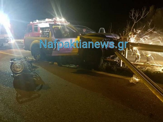Ένα σφοδρό τροχαίο ατύχημα σημειώθηκε στις 05.00 τα ξημερώματα της Δευτέρας στον Περιφερειακό Ναυπάκτου, κατά το οποίο ένα αγροτικό αυτοκίνητο που κατευθυνόταν στο Αντίρριο προσέκρουσε στις προστατευτικές μπάρες λίγο πριν τα φανάρια για τον κόμβο προς Ναύπακτο.