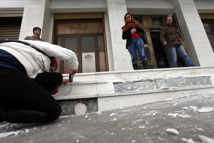 15:21 Υλικές ζημιές στο κέντρο της Αθήνας. Πέτρες παντού στο δρόμο και σπασμένα σκαλιά στο ξενοδοχείο Μεγάλη Βρετάνια.
