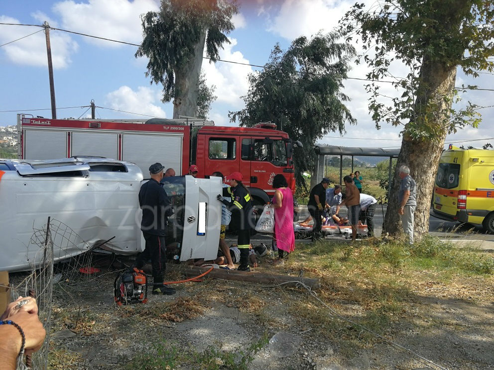 Εκεί, ταξί που κινούταν επί της λεωφόρου, από Χανιά προς Σούδα, συγκρούστηκε πλαγιομετωπικά με οκταθέσιο μινι βαν που κινούταν σε κάθετο δρόμο. Στο βαν, το οποίο από την σφοδρότητα της σύγκρουσης ανετράπη, επέβαιναν έξι άτομα, τουρίστες από την Αγγλία. Οι τρεις έχουν τραυματιστεί και χρειάστηκε η συνδρομή της Πυροσβεστικής για τον απεγκλωβισμό τους.