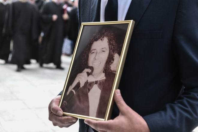 "Με τι καρδιά να σ' αποχαιρετήσω;" έγραψε ένας από τους θαυμαστές του Σταμάτη Κόκοτα που κηδεύτηκε στο κοιμητήριο Ζωγράφου.