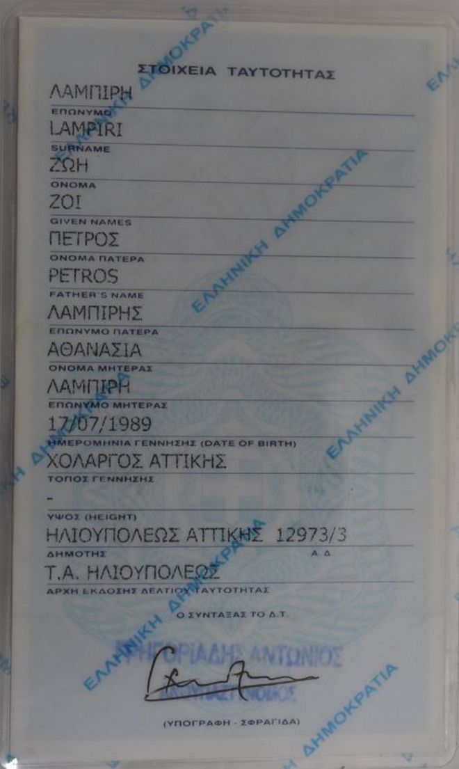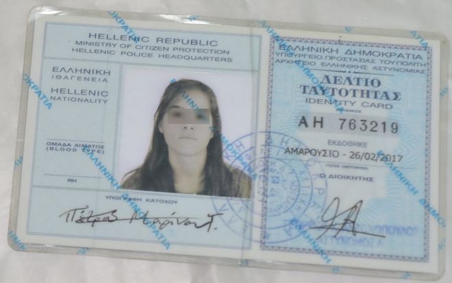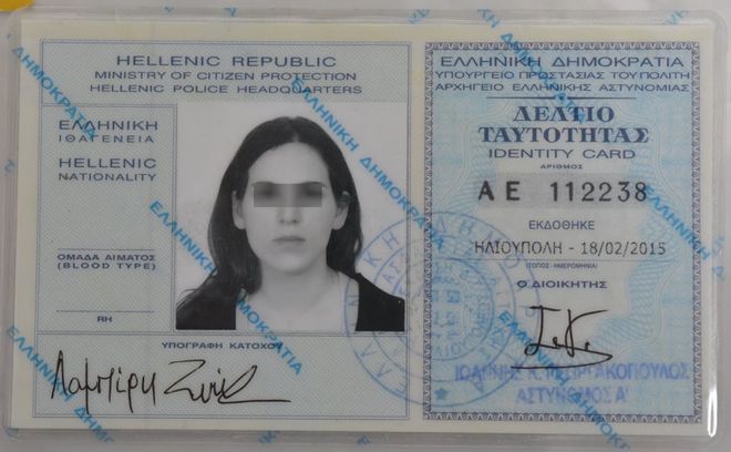Το συγκεκριμένο Δελτίο Αστυνομικής Ταυτότητας φέρει φωτογραφία της συλληφθείσας ΑΘΑΝΑΣΟΠΟΥΛΟΥ Κωνσταντίνας.