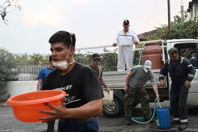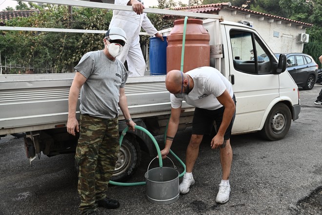 Με όσα μέσα διαθέτουν, κουβάδες, λάστιχα, κλαδιά ενώνουν τις δυνάμεις τους και προσπαθούν να σβήσουν τις εστίες της φωτιάς που έφτασαν μέχρι τα σπίτια τους και που δυστυχώς σε πολλές περιπτώσεις, έκαναν στάχτη.