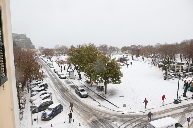 Κέρκυρα: Έντονες χιονοπτώσεις στα Βόρεια – Διακοπή κυκλοφορίας σε ορεινά χωριά