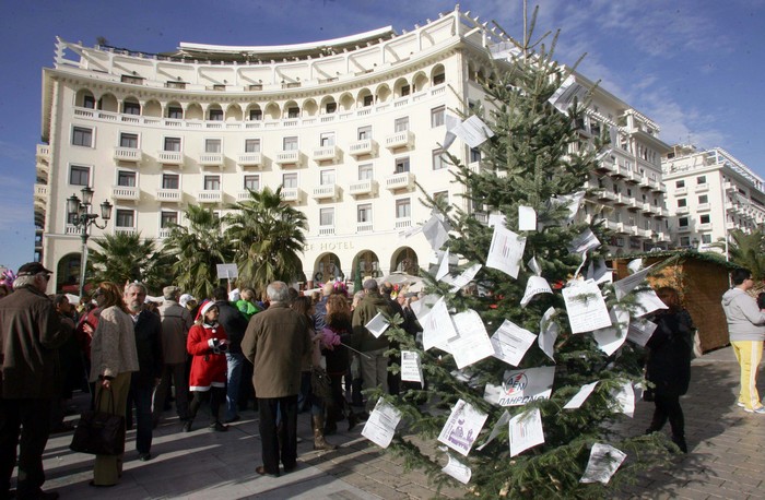 ΘΕΣΣΑΛΟΝΙΚΗ - ΣΤΟΛΙΣΜΟΣ ΧΡΙΣΤΟΥΓΕΝΝΙΑΤΙΚΟΥ ΔΕΝΤΡΟΥ ΜΕ ΛΟΓΑΡΙΑΣΜΟΥΣ ΤΗΣ ΔΕΗ ΣΤΗΝ ΠΛΑΤΕΙΑ ΑΡΙΣΤΟΤΕΛΟΥΣ ΑΠΟ ΤΗΝ ΠΡΩΤΟΒΟΥΛΙΑ ΚΑΤΟΙΚΩΝ ΤΟΥΜΠΑΣ (ΜΟΤΙΟΝΤΕΑΜ // ΓΙΑΝΝΗΣ ΜΩΥΣΙΑΔΗΣ)