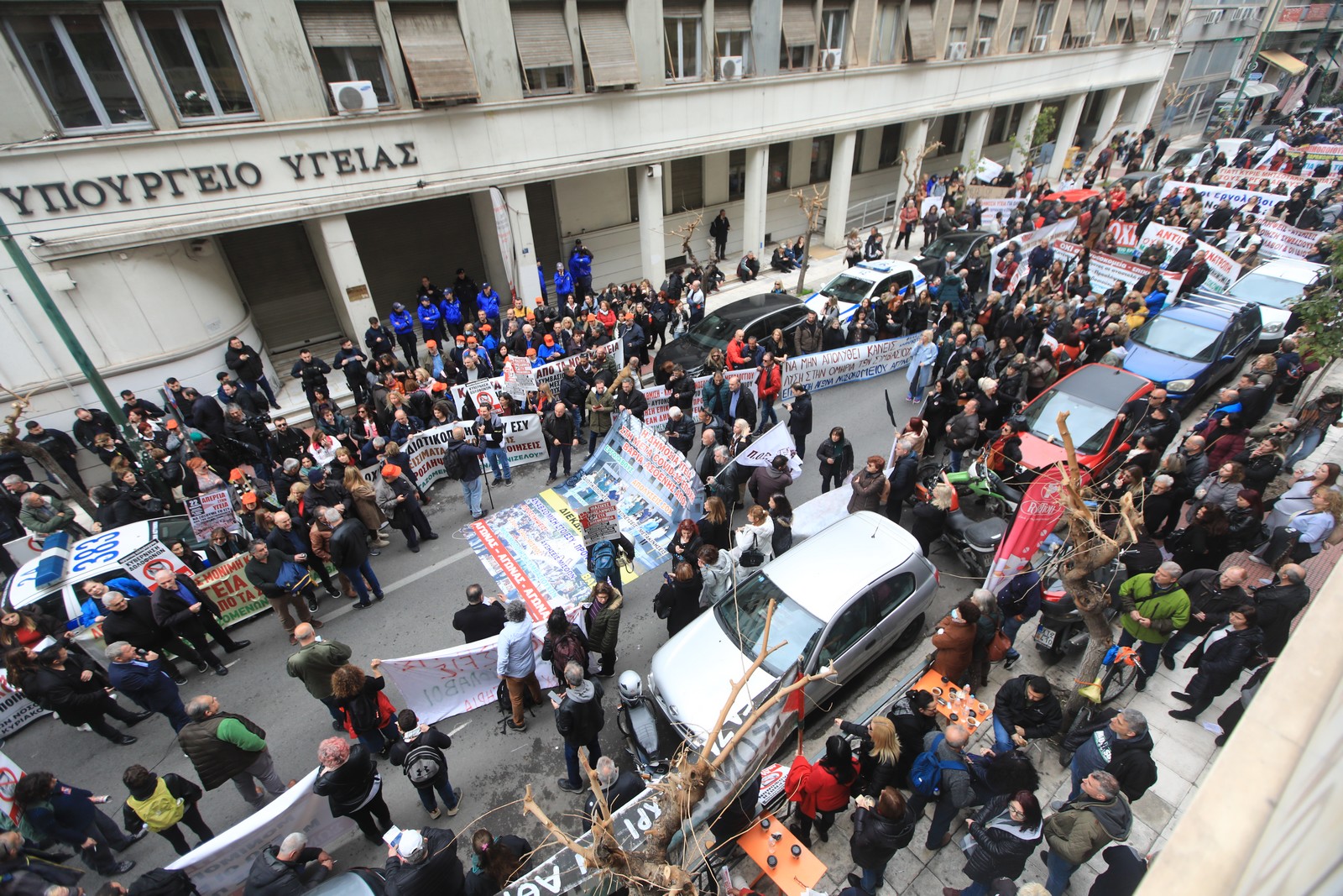 Λίγο μετά τις 12 το μεσημέρι, φοιτητές υποδέχτηκαν με συνθήματα την πορεία των απεργών γιατρών και υγειονομικών. Υγειονομικοί συγκεντρώθηκαν στην Πλατεία Μαβίλη το πρωί της Πέμπτης στις 8.30 π.μ.