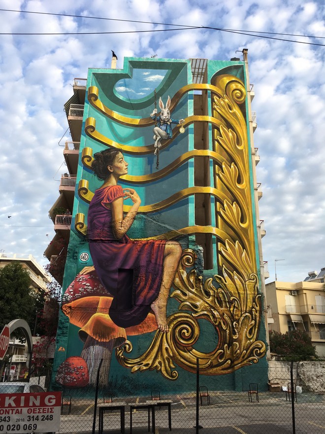 Ο καλλιτέχνης από το Μπαλί που τα τελευταία χρόνια έχει εγκατασταθεί στην Αθήνα, WD, κρύβεται πίσω από πολλά διάσημα γκράφιτι της Αθήνας, ένα εκ των οποίων και η κουκουβάγια του Μεταξουργείου, που έγινε viral παγκοσμίως, με τίτλο “Knowleadge speaks – Wisdom listens” – κατά το ρητό του Τζίμι Χέντριξ. Έχε δημιουργήσει ακόμα και το εμβληματικό έργο “No Land for the Poor” στα Εξάρχεια, το οποίο ο καλλιτέχνης είχε αφιερώσει στους φτωχούς και τους άστεγους της Ελλάδας και όλου του κοσμου. “Δεν είναι αόρατοι”, είχε γράψει.