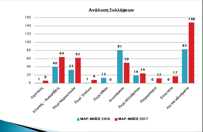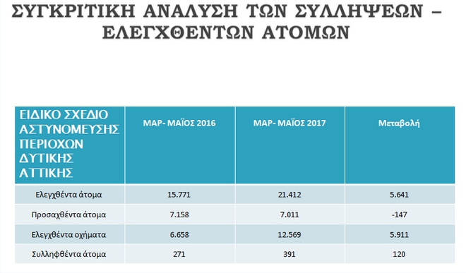 Ακολουθούν πίνακες με συγκριτικά στοιχεία προσαγωγών, συλλήψεων και ελέγχων στην περιοχή: