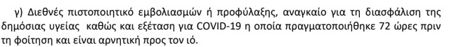 Ενα από αυτά, σύμφωνα με την εγκύκλιο που έχει την υπογραφή της Υφυπουργού Σοφίας Ζαχαράκη, προβλέπει ότι οι γονείς θα πρέπει να προσκομίσουν εξέταση για τον Covid-19 η οποία θα πρέπει να έχει πραγματοποιηθεί 72 ώρες πριν και να έχει αρνητικό αποτέλεσμα.