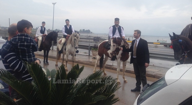 Το παρών έδωσε φυσικά ο Δήμαρχος Στυλίδας, Απόστολος Γκλέτσος, ο οποίος φωτογραφήθηκε με τους άνδρες, που φόρεσαν τις παραδοσιακές φορεσιές και παρέλασαν με τα άλογα στους δρόμους της πόλης.