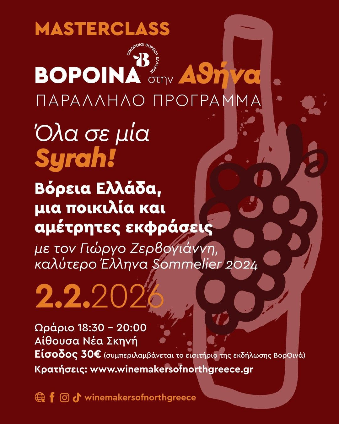 Στην Αθήνα ταξιδεύουν τη Δευτέρα 2 Φεβρουαρίου οι «Οινοποιοί Βορείου Ελλάδος» για την οινική εκδήλωση ΒορΟινά και προσκαλούν το οινόφιλο κοινό σε γευστικές δοκιμές με εκλεκτά κρασιά και αποστάγματα που ξεχωρίζουν. Παράλληλα, διοργανώνουν και δύο masterclass για να γνωρίσουν στο κοινό περισσότερα για τα αφρώδη κρασιά της Βορείου Ελλάδος αλλά και για την ποικιλία Syrah, και τα δύο με τον καλύτερο Έλληνα Sommelier 2024, Γιώργο Ζερβογιάννη.