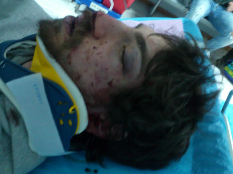 Λίγο μετά τις τρεις το μεσημέρι και ενώ ο νεαρός περπατούσε στη συμβολή των οδών Παπαδά και Κουσιανόφκσι, στους Αμπελοκήπους, ένα πλήθος χρυσαυγιτών που βρίσκονταν σε κοντινή καφετέρια, φαίνεται πως τον πέρασαν για αντιεξουσιαστή και υπό την μορφή αντιποίνων για την επίθεση που δέχτηκαν τα γραφεία τους το πρωί, του επιτέθηκαν και τον ξυλοκόπησαν άγρια, τραυματίζοντάς σε τέτοιο βαθμό που κρίθηκε αναγκαία η μεταφορά του στο Νοσοκομείο Ερυθρός Σταυρός, όπου νοσηλεύται με τραύματα στο κεφάλι και το σώμα.