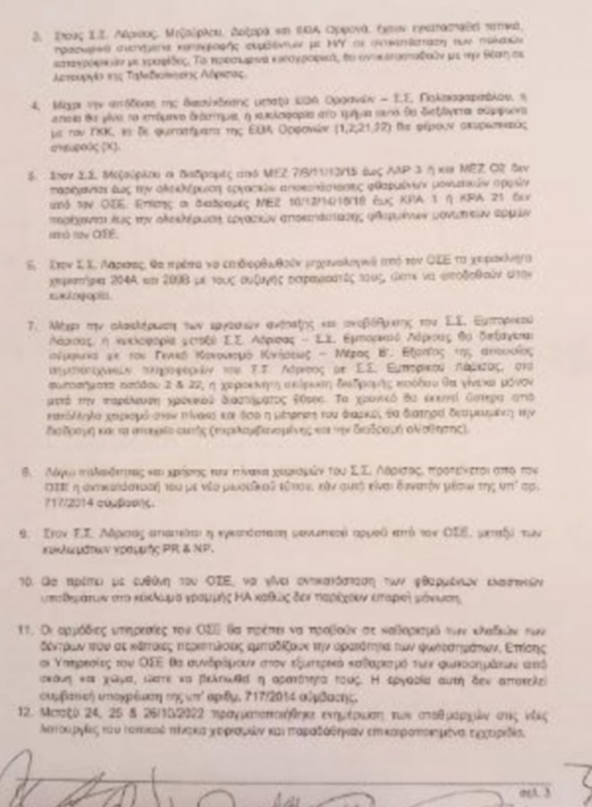 Τα φωτοσήματα ΛΑΡ 11, ΛΑΡ13, ΛΑΡ15 θα παραμείνουν κλειστά (ερυθρό) και η κυκλοφορία μεταξύ Σ.Σ. Λάρισας – Σ.Σ. Εμπορικού Λάρισας θα διεξάγεται σύμφωνα με τον Κανονισμό Κινήσεως – Μέρος Β΄”.