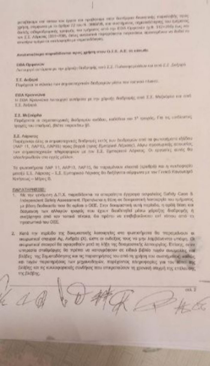 Από το έγγραφο του ΟΣΕ μάλιστα προκύπτει ότι ακόμα και μετά τη δοκιμαστική λειτουργία, από τις 15 Νοεμβρίου 2022 και στο εξής, «σηματοτεχνικές διαδρομές με αφετηρία τα τρία συγκεκριμένα φωτοσήματα προς Εμπορικό Σταθμό Λάρισας δεν μπορούν να χαραχθούν. Για την αναχώρηση προς Θεσσαλονίκη οι αλλαγές θα μετακινούνται με βεβιασμένο χειρισμό μέσω κλειθροδιακόπτη επί του πίνακα».