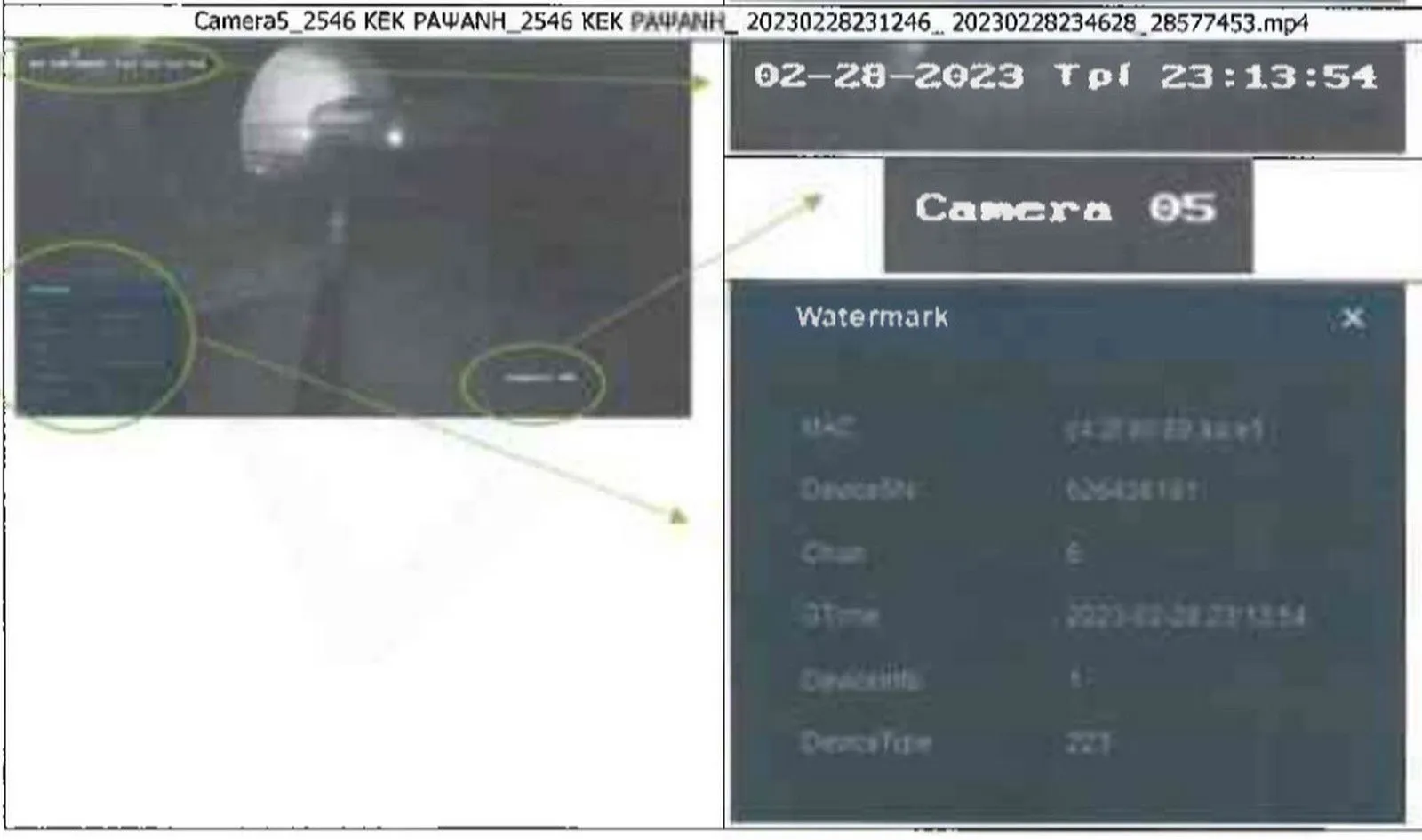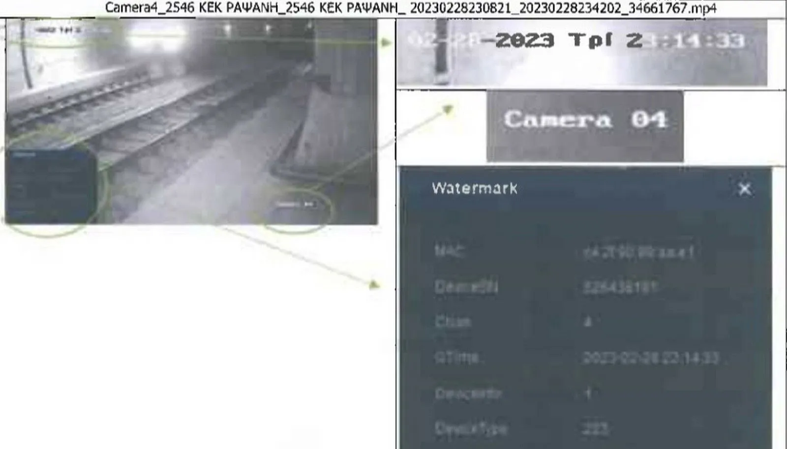 Για το δεύτερο βίντεο «προκύπτει από την ανάλυση ότι το εν λόγω αρχείο αποτελεί ακριβές αντίγραφο (γνήσιο) αρχείου βίντεο που προέρχεται από την κάμερα 04 που ήταν συνδεδεμένη με το καταγραφικό, με την ονομασία ΚΕΚ ΡΑΨΑΝΗ σειριακού αριθμού 526438191 μεταφορτώθηκε μέσω του λογισμικού διαχείρισης IVMS και αφορά το χρονικό διάστημα 28-02-2023 23:08 έως 23:42».