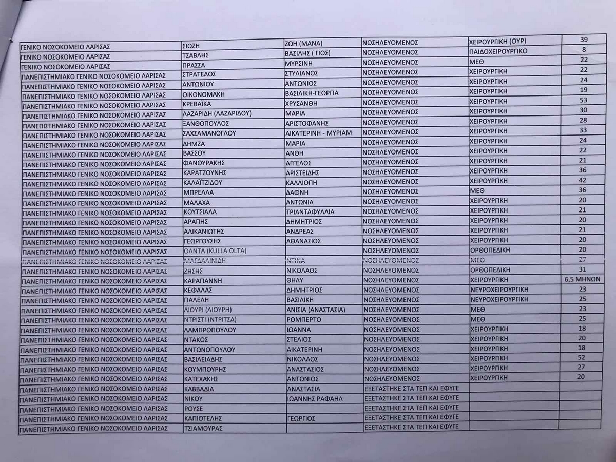 Η λίστα των τραυματιών όπως δημοσιεύτηκε από το onlarissa.gr.