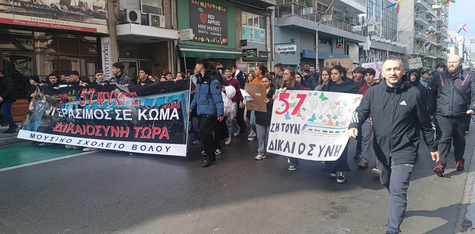 Η συγκέντρωση για τη συμπλήρωση δύο ετών από το τραγικό δυστύχημα των Τεμπών στον Βόλο είναι μεγαλειώδης.