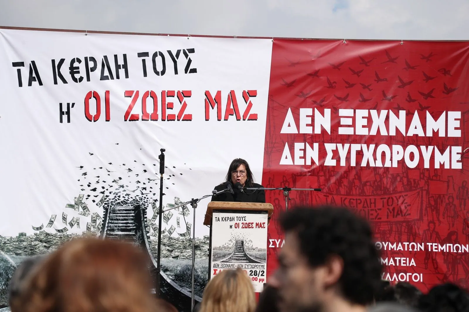 Στην συγκέντρωση έχουν επίσης μιλήσει και άλλοι συγγενείς θυμάτων, μηχανοδηγών και εργαζόμενων στο σιδηρόδρομο.