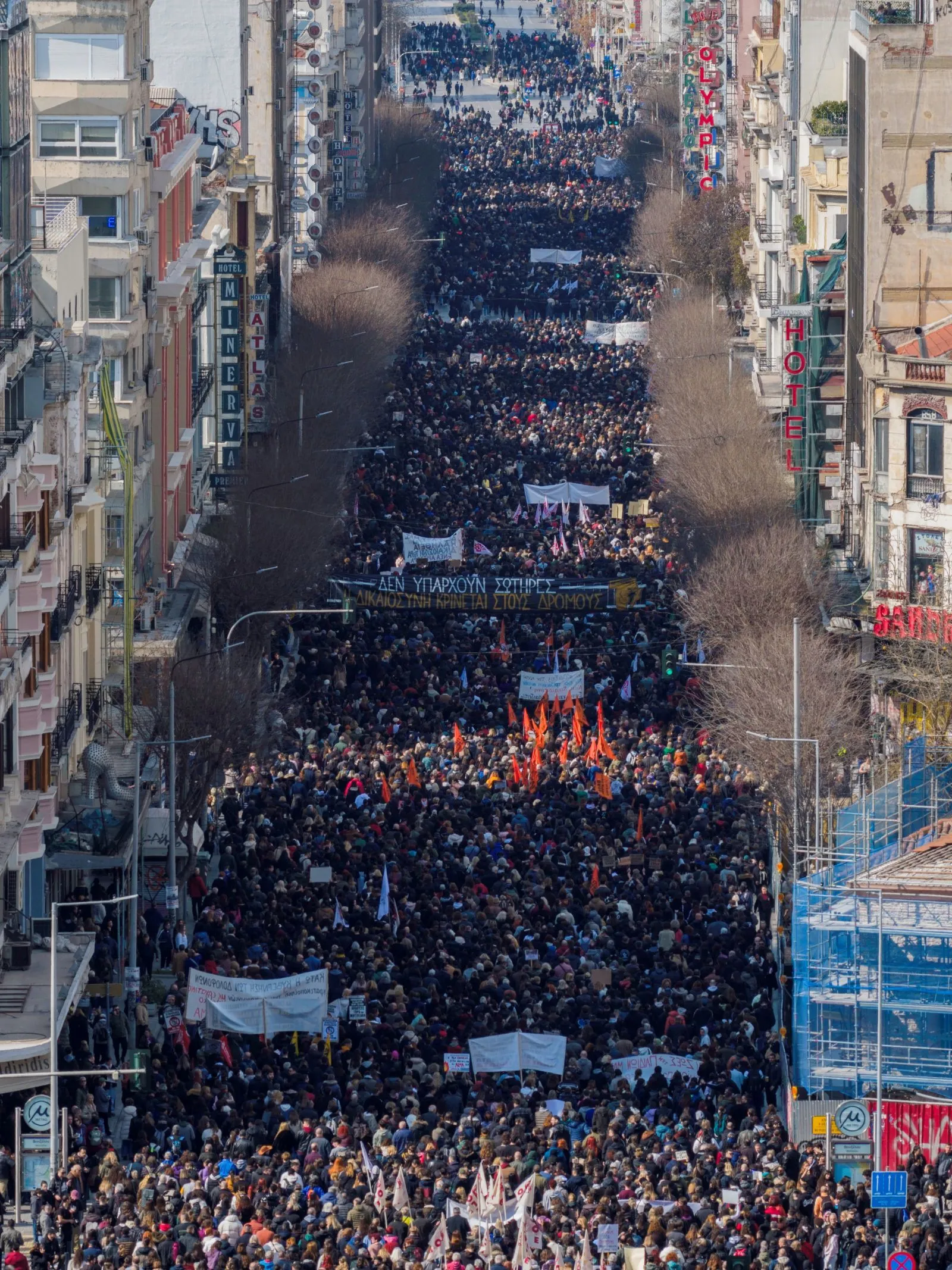 Μεγαλειώδης πορεία πραγματοποιείται και στην Θεσσαλονίκη για τα τρία χρόνια από τραγικό το δυστύχημα των Τεμπών.