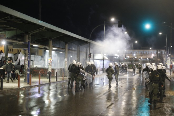 Νωρίτερα, όπως μετέδωσε το thestival, ομάδα ατόμων που συμμετείχε στην πορεία πέταξε πέτρες και πυρσούς στη στατική διμοιρία που φρουρούσε τα γραφεία της ΝΔ στην οδό Μιχαήλ Καλού. Δυνάμεις των ΜΑΤ απώθησαν τα άτομα, κάνοντας χρήση χημικών.