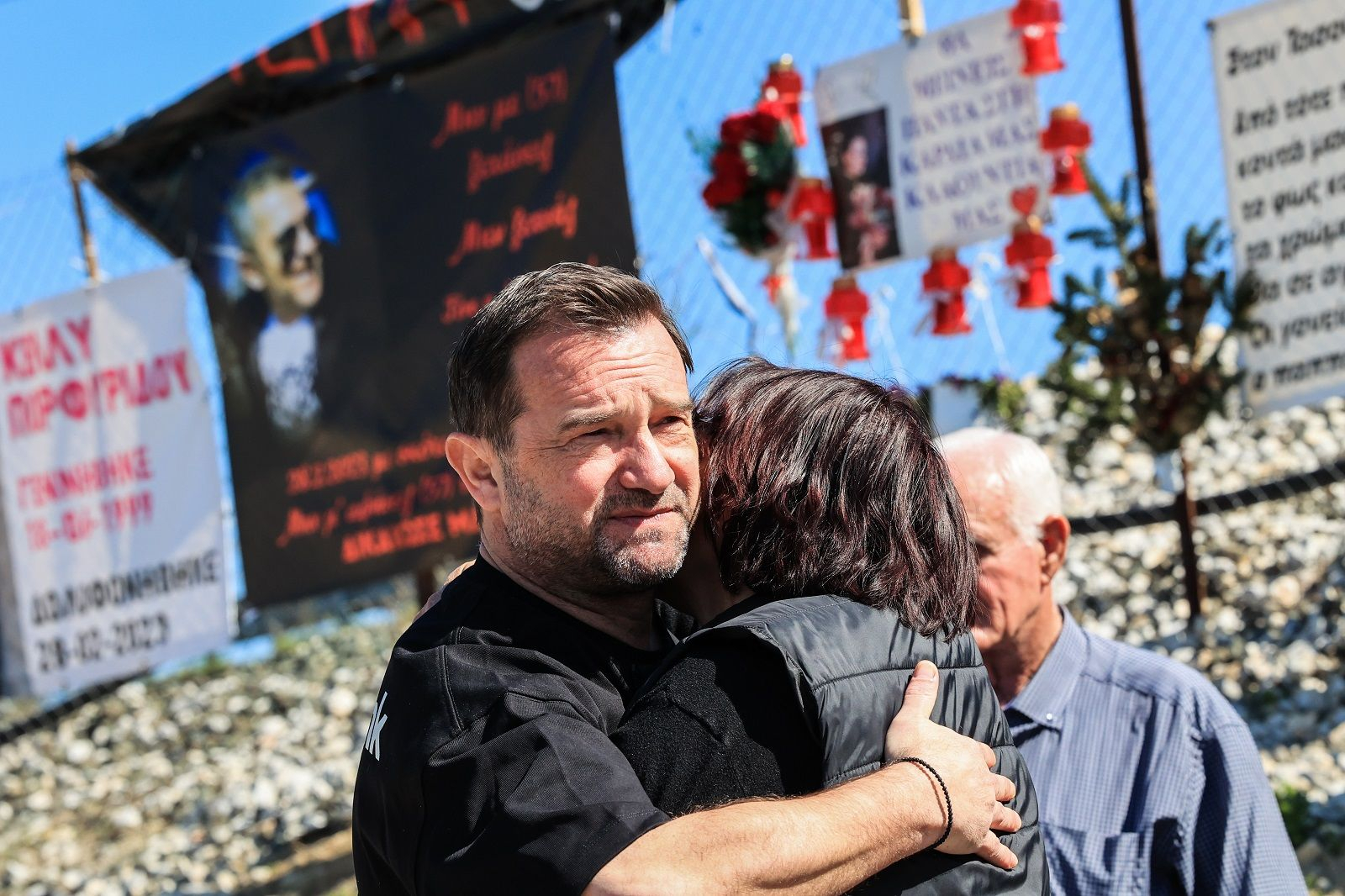 Φτάνοντας στο σημείο του δυστυχήματος τέλεσαν τρισάγιο και άφησαν λουλούδια στη μνήμη των θυμάτων.