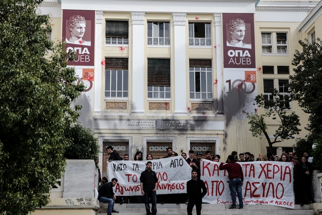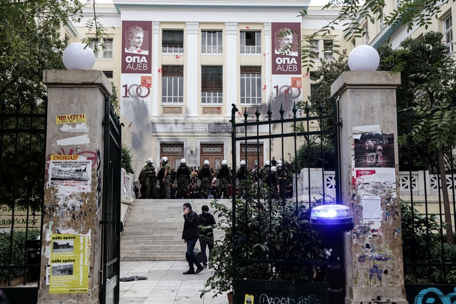 Επεισόδια σημειώθηκαν το μεσημέρι της Δευτέρας όταν δυνάμεις της αστυνομίας εισέβαλαν στο Οικονομικό Πανεπιστήμιο Αθηνών (ΑΣΟΕΕ).