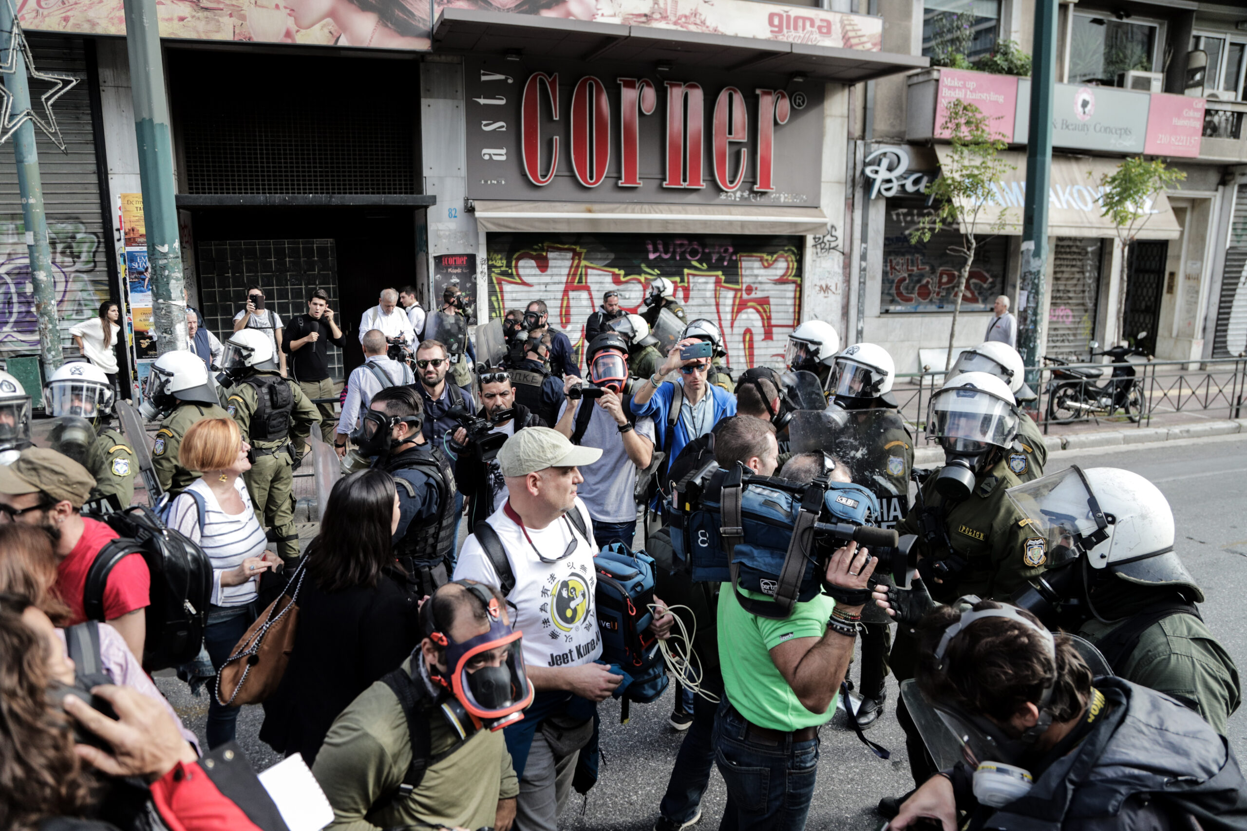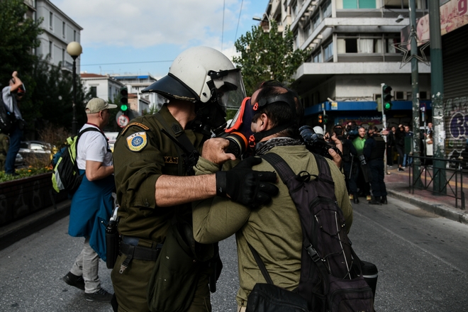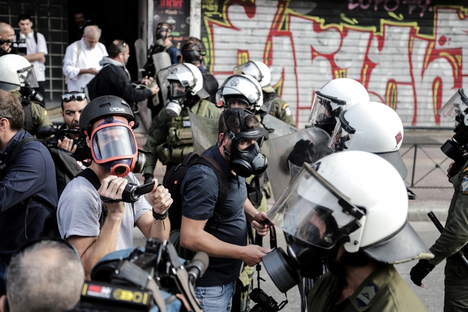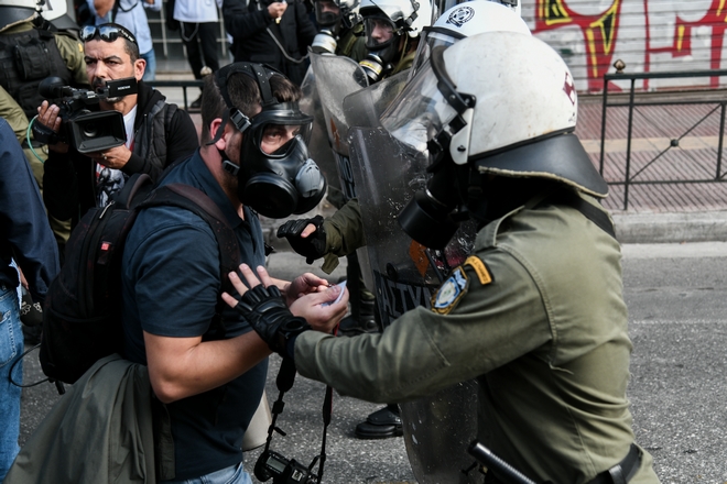 Τα ΜΑΤ απωθούν δημοσιογράφους που θέλουν να μπουν στην ΑΣΟΕΕ