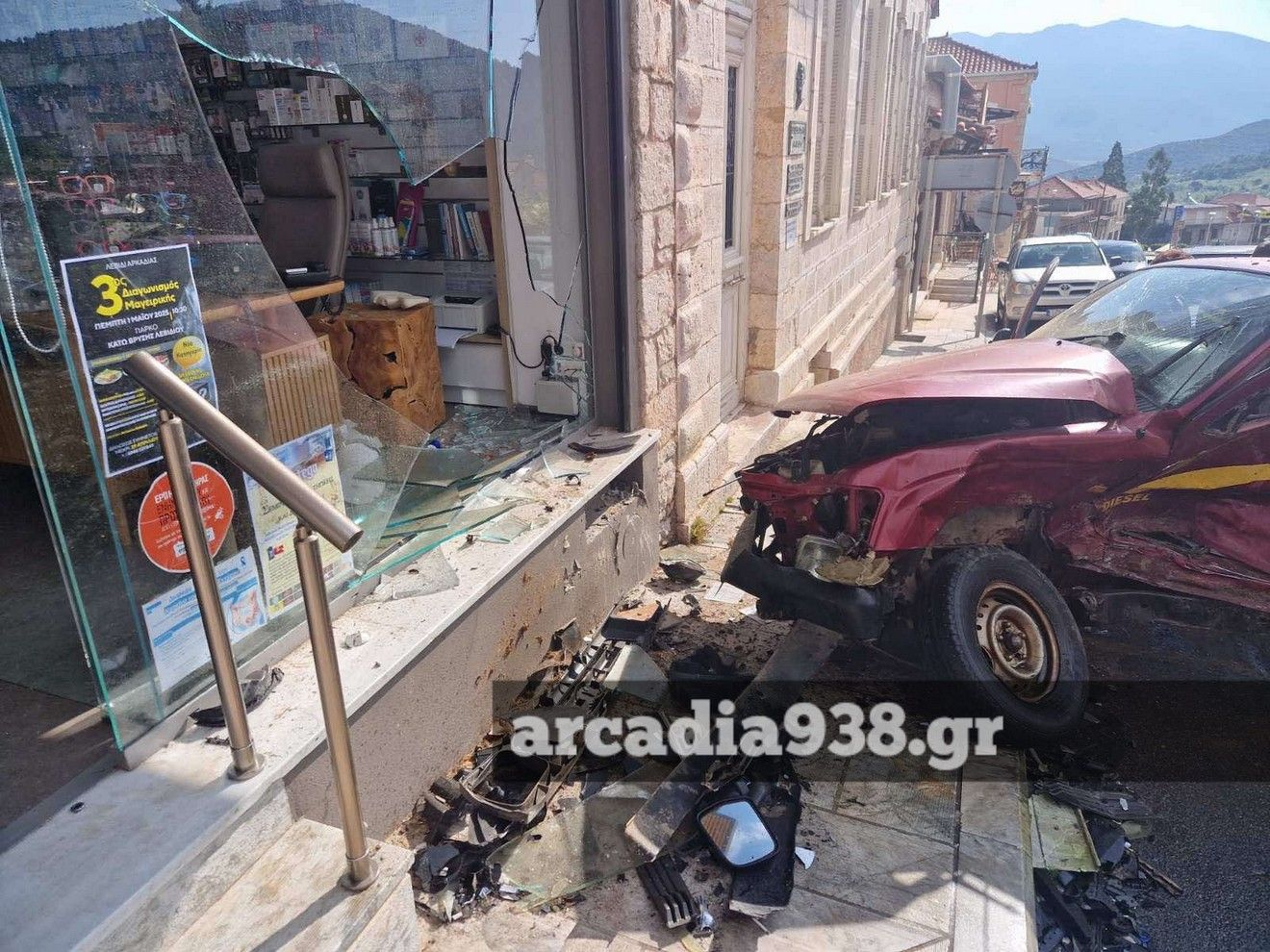 Σύμφωνα με πληροφορίες του Αρκαδία 93.8, το τροχαίο δυστύχημα σημειώθηκε λίγα λεπτά πριν τις 9 το πρωί του Σαββάτου (26/04) όταν Ι.Χ. όχημα εισήλθε με μεγάλη ταχύτητα ανάποδα στην πλατεία, καθώς η είσοδος σε αυτή πρέπει να γίνεται κυκλικά και όχι απευθείας και συγκρούστηκε με σταθμευμένο αγροτικό όχημα, το οποίο βρισκόταν έξω από φαρμακείο της περιοχής. Με τη σειρά του αυτό έπεσε στην τζαμαρία του φαρμακείου.