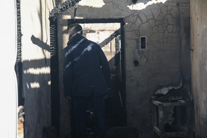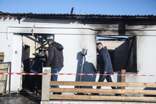 Η πυρκαγιά που σύμφωνα με τις πρώτες εκτιμήσεις της Πυροσβεστικής ξέσπασε από μία σόμπα pellet που χρησιμοποιούσε η οικογένεια για την θέρμανσή της, εξαπλώθηκε σύντομα στην μονοκατοικία και μέχρι να φτάσουν οι πυροσβέστες είχε καταρρεύσει και η στέγη.