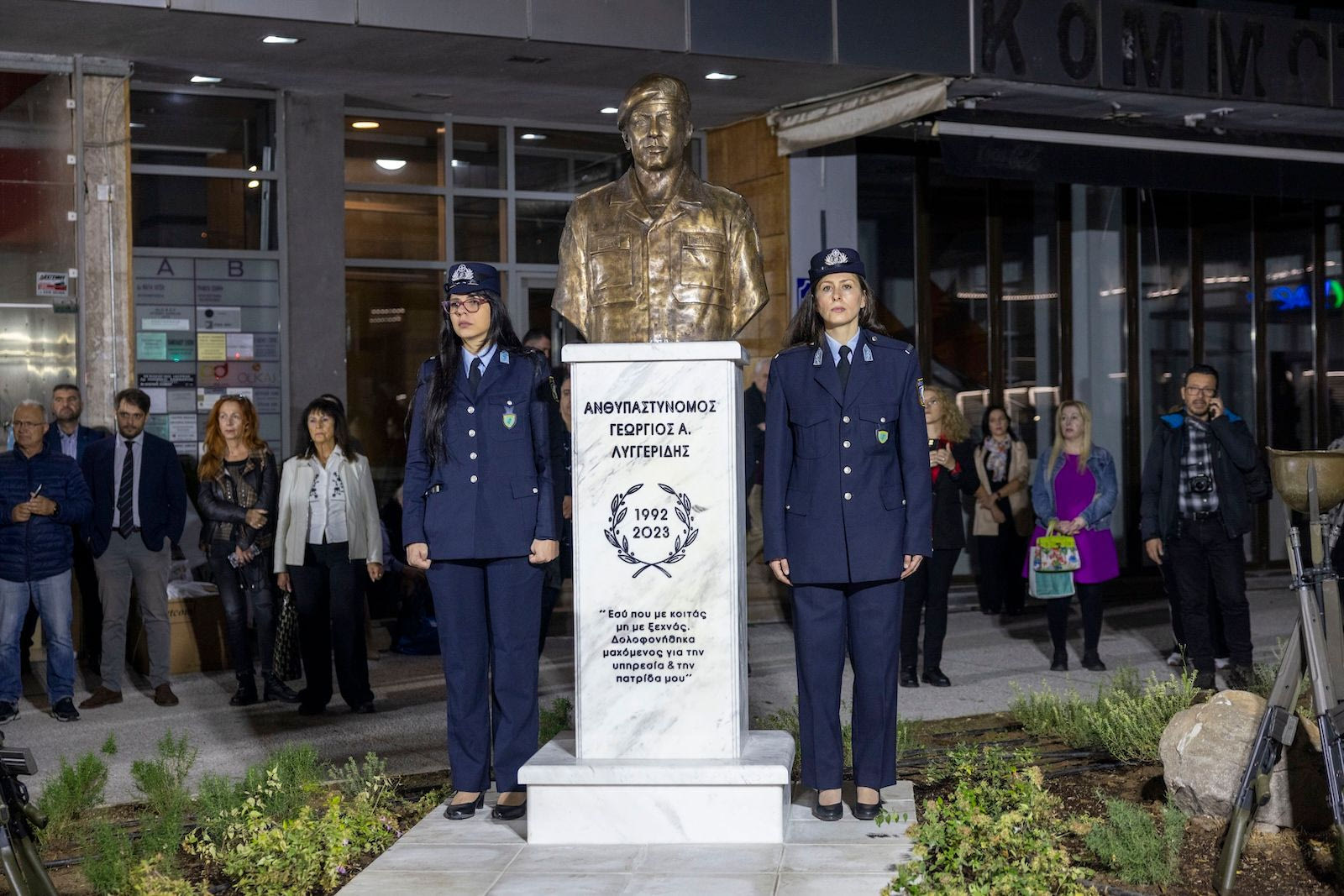 Τα αποκαλυπτήρια της προτομής του Γεωργίου Λυγγερίδη, του αστυνομικού των ΜΑΤ που έπεσε νεκρός, ύστερα από επίθεση χούλιγκαν στου Ρέντη, το Δεκέμβριο του 2023, έγιναν το απόγευμα στη Θεσσαλονίκη.