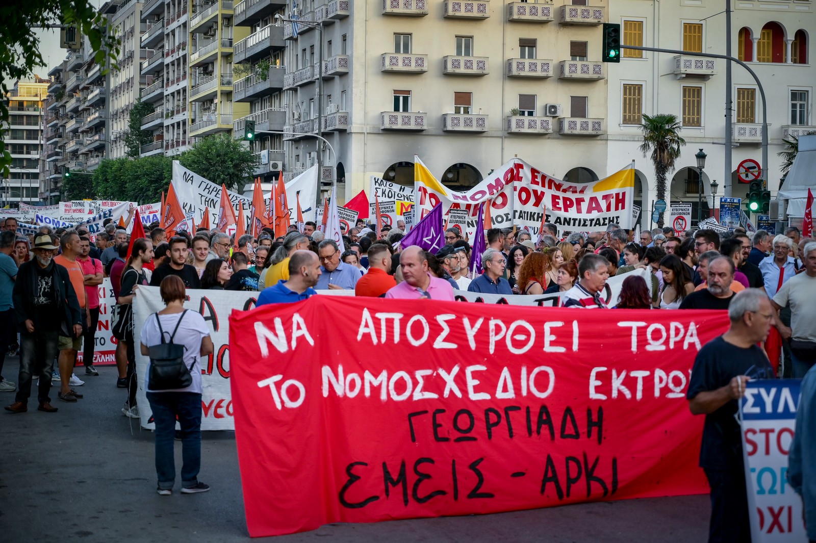 Υπό τη βαριά σκιά των ακραίων πλημμυρικών φαινομένων που δοκιμάζουν τη Θεσσαλία, πραγματοποιήθηκαν συλλαλητήρια από εργατικά σωματεία, συλλογικότητες, φοιτητές, συνταξιούχους και άνεργους, με αφορμή την έναρξη λειτουργίας της 87ης ΔΕΘ.