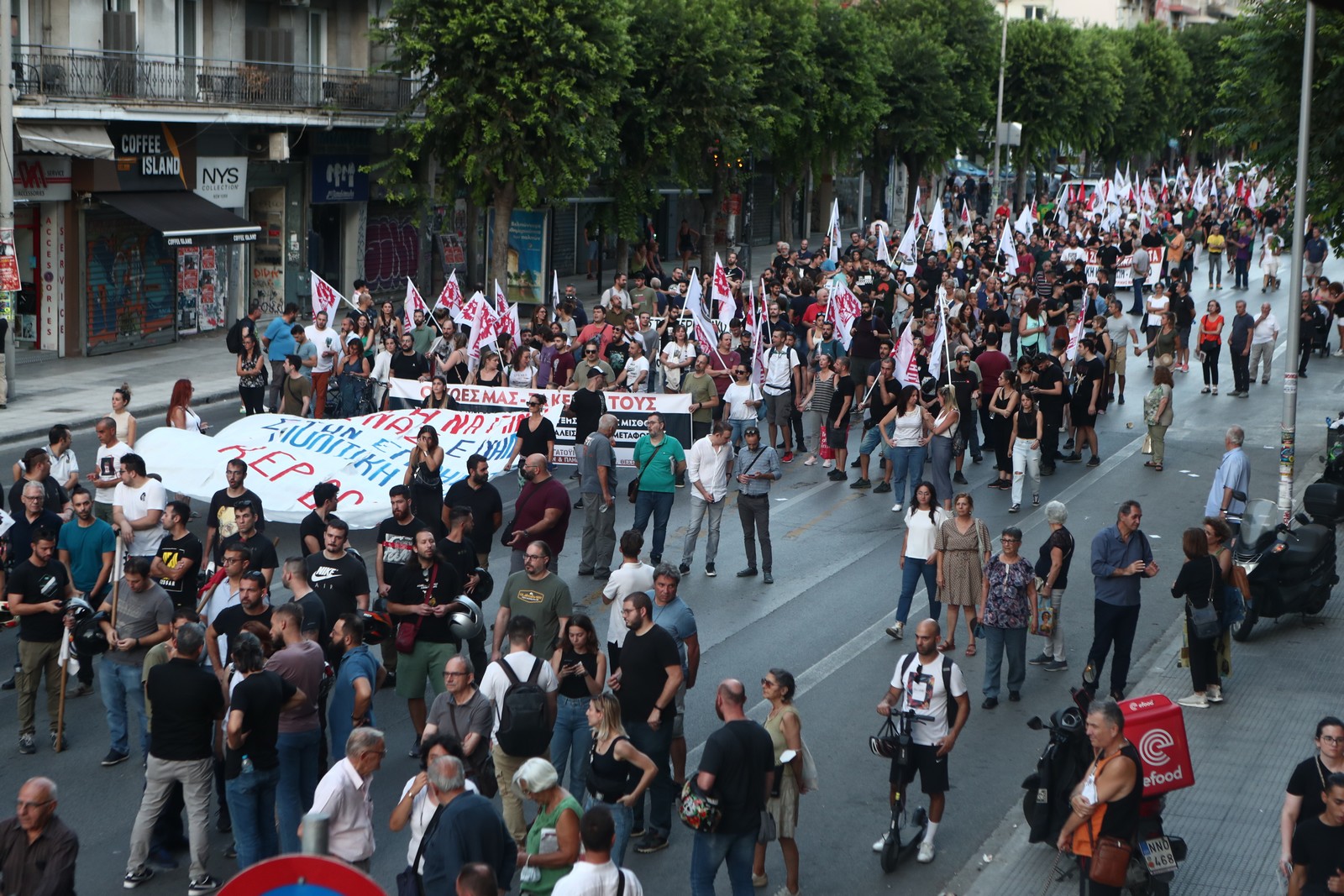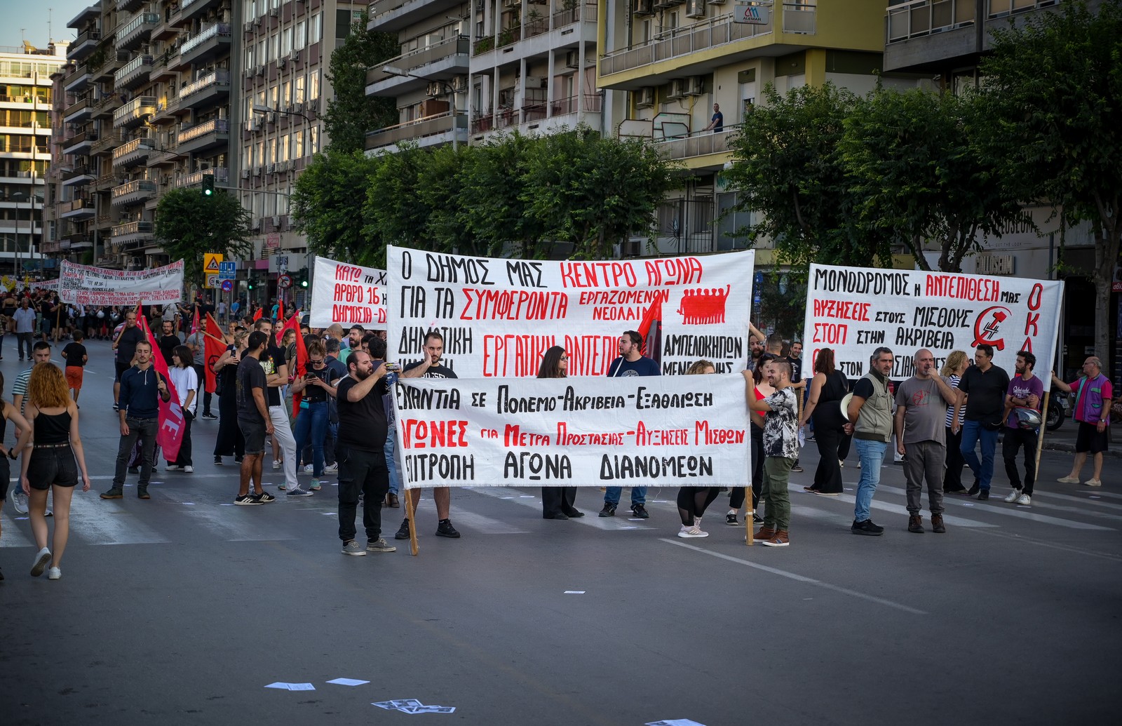 Εκφράζοντας την αλληλεγγύη τους στους πλημμυροπαθείς αλλά και σε όσους επλήγησαν από τις πυρκαγιές το καλοκαίρι, οι συγκεντρωμένοι διαδήλωσαν στο κέντρο της Θεσσαλονίκης, ζητώντας, καλύτερους μισθούς και καλύτερες συνθήκες εργασίες, βελτίωση της ποιότητας παροχών δημόσιας υγείας και παιδείας.