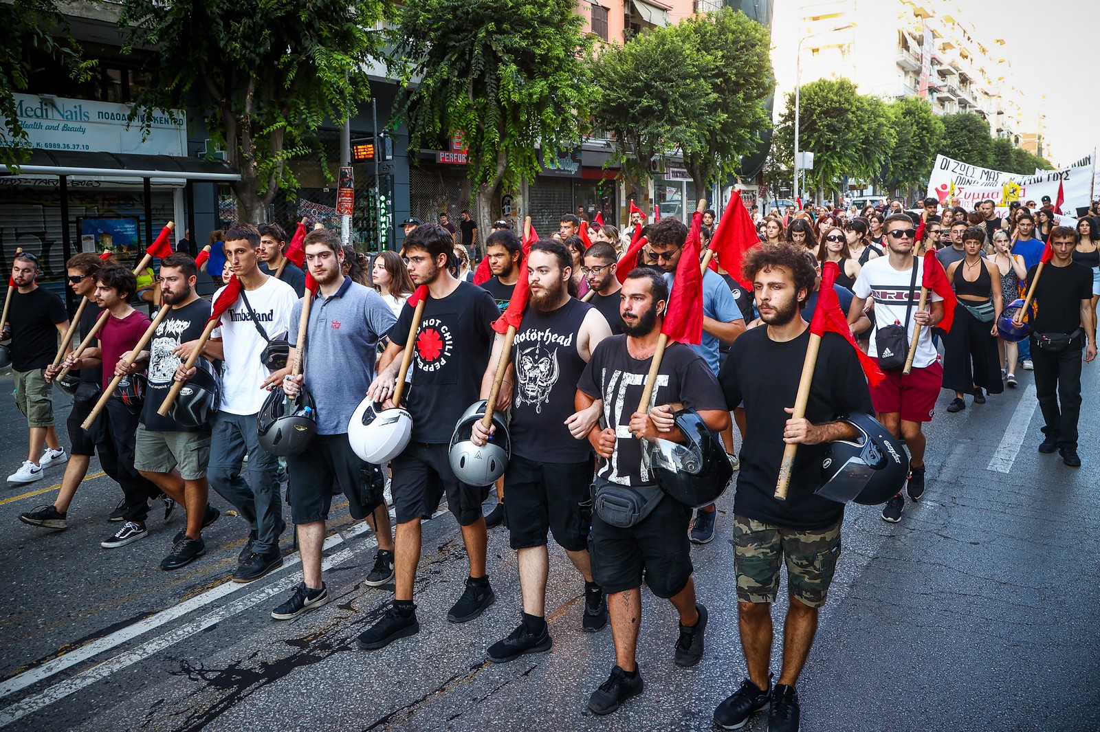 Όλοι οι συγκεντρωμένοι συγκρότησαν πορείες που κινήθηκαν σε διάφορους δρόμους της πόλης.