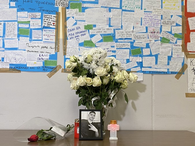 «Έχουμε δημιουργήσει μαζι με τα παιδιά, μέσα στο σχολείο, δυο γωνίες έκφρασης και συμπαράστασης για τους συμμαθητές, τους φίλους και τους καθηγητές του Παναγιώτη. Αρχικά τοποθετήσαμε όλα αυτά τα μηνύματα και τη φωτογραφία του, στο θρανίο του, αλλά τελικά αποφασίσαμε ότι είναι καλύτερα να υπάρχουν οι γωνιές του, έξω από την αίθουσα διδασκαλίας. Όλοι έχουν αφήσει λευκά λουλούδια και τα μήνυμά τους για τον τραγικό χαμό του. Όλα απευθύνονται στον Παναγιώτη», αναφέρει συγκινημένος.