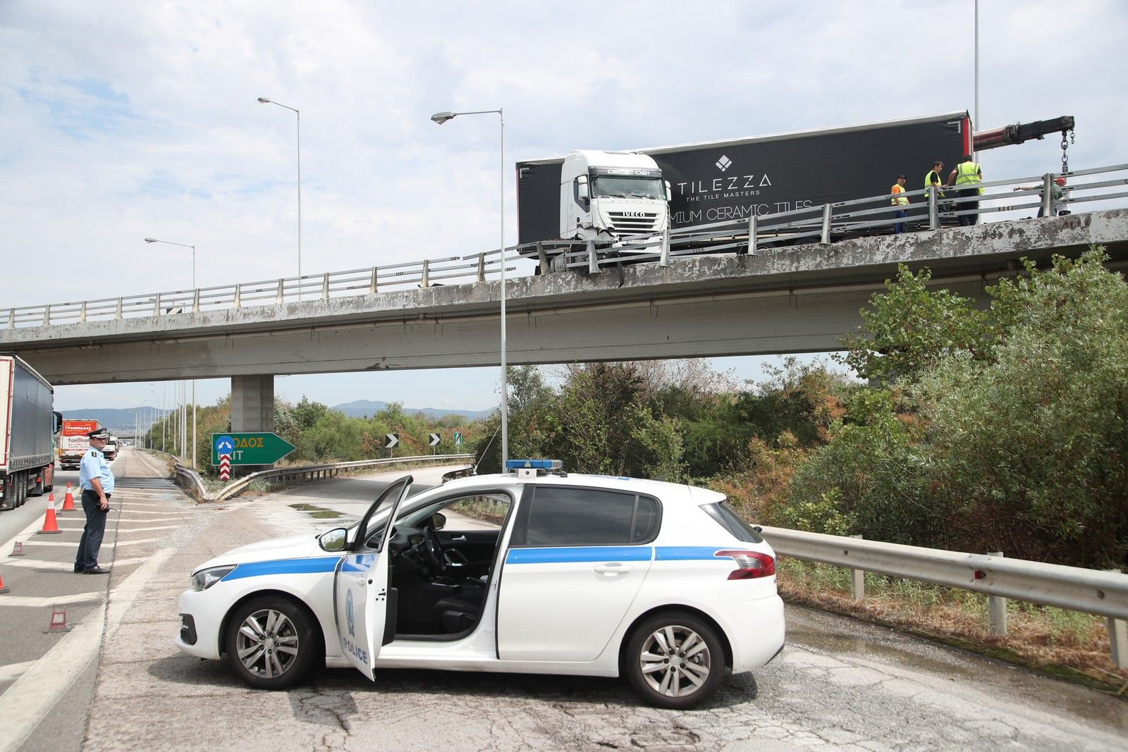 Θεσσαλονίκη: Νταλίκα “κρεμάστηκε” από αερογέφυρα