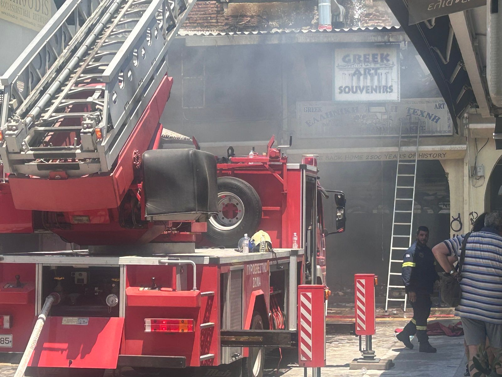 Δεν είναι σαφές ακόμη με ποιον τρόπο και από ποιο κατάστημα ξεκίνησε η πυρκαγιά. Μεγάλη ζημιά έχει υποστεί κατάστημα με αναμνηστικά και είδη λαϊκής τέχνης, καθώς και πλαϊνά καταστήματα, μεταξύ των οποίων ένα ουζερί. Τα καταστήματα ήταν κλειστά και δεν αναφέρθηκαν εγκλωβισμοί ατόμων.