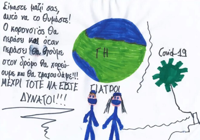 «Αυτό είναι ένα μήνυμα προς αυτούς τους ανθρώπους που ζορίζονται, που δεν κοιμούνται που δεν ξεκουράζονται. Στους γιατρούς. Άμα δεν υπήρχαν δεν θα ζούσαμε, θα πεθαίναμε όλοι χωρίς αυτούς γι’ αυτό τους ευχαριστούμε πάρα πολύ», έγραψε κάποιο άλλο παιδί.