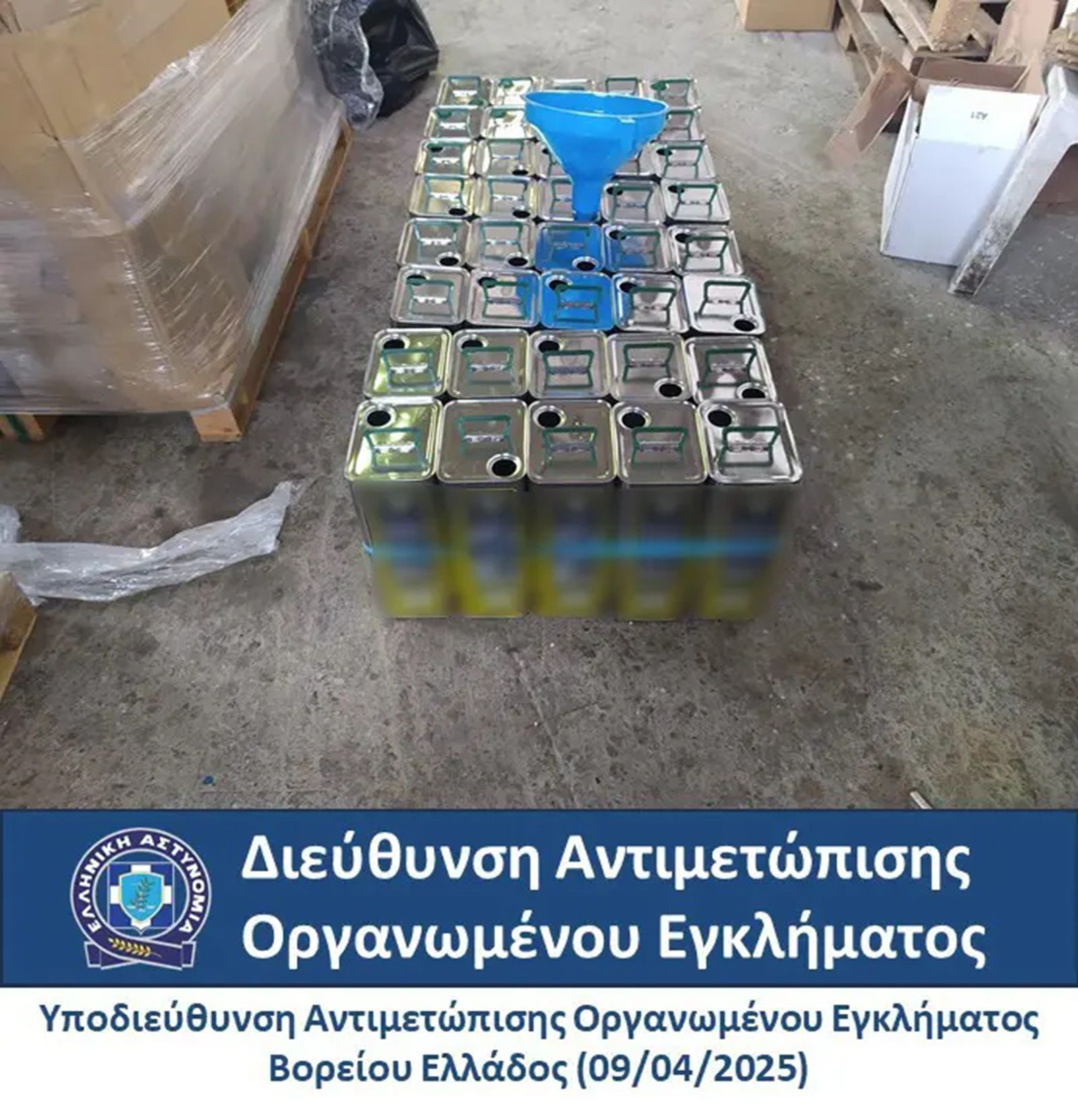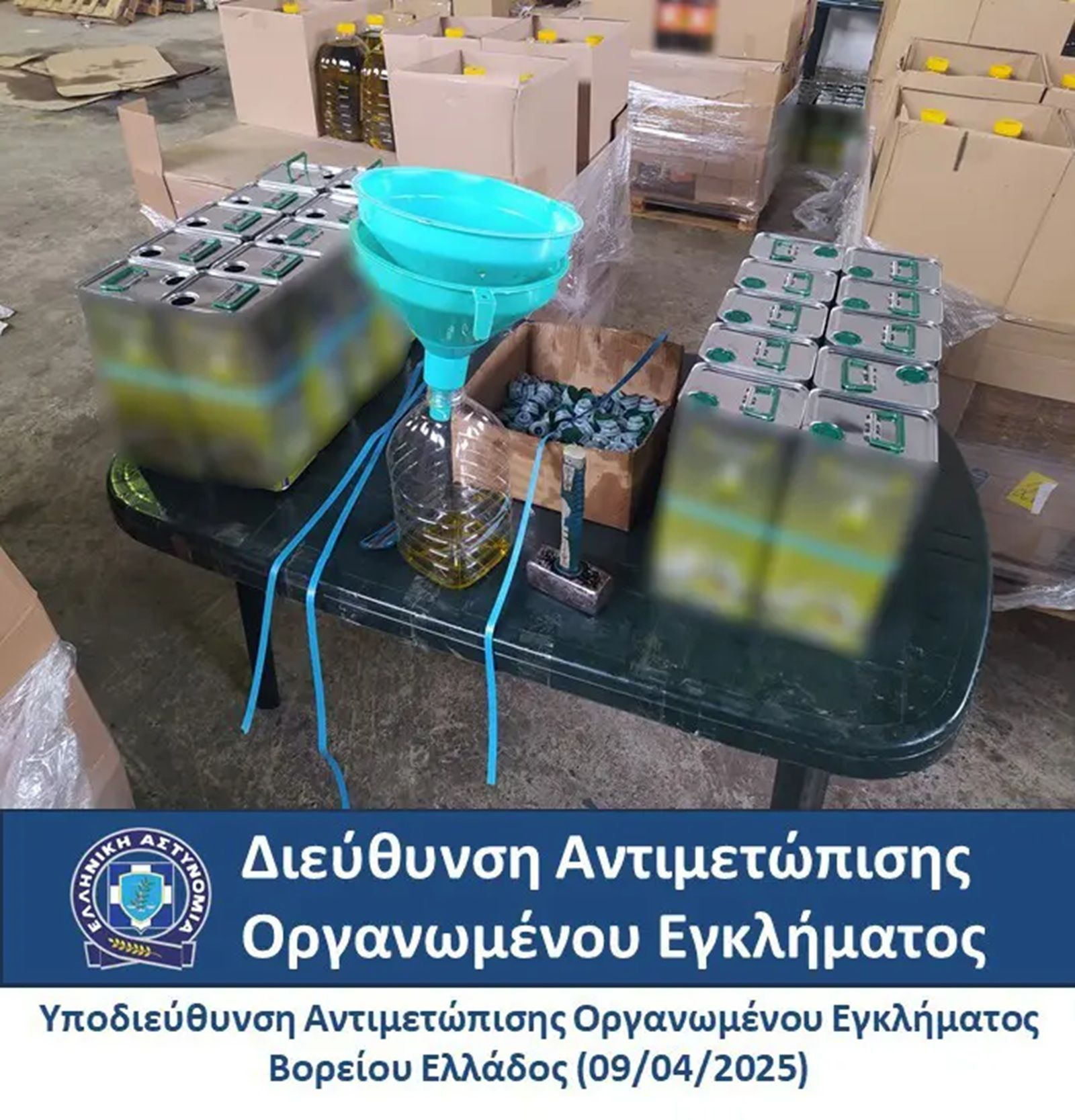 Αξίζει να σημειωθεί ότι από το Τμήμα Δίωξης Οικονομικών Εγκλημάτων της Υποδιεύθυνσης Αντιμετώπισης Οργανωμένου Εγκλήματος Βορείου Ελλάδος, στο πλαίσιο δράσεων για την πάταξη του φαινομένου της παρασκευής και διακίνησης νοθευμένων ελαίων, από τον Νοέμβριο του 2024 έως και τον Φεβρουάριο του 2025, εξαρθρώθηκαν τέσσερις εγκληματικές οργανώσεις, που δραστηριοποιούνταν στον τομέα αυτό, ενώ συνελήφθησαν 12 άτομα, με τον συνολικό αριθμό κατηγορουμένων να ανέρχεται σε 19 άτομα.