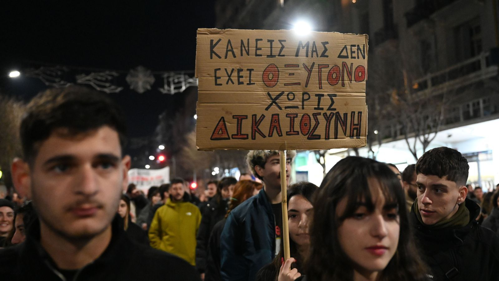 Χιλιάδες κόσμου συγκεντρώθηκε για δεύτερη φορά μέσα σε μια ημέρα στο κέντρο της πόλης για να ζητήσουν δικαίωση για τους 57 νεκρούς της σιδηροδρομικής τραγωδίας.