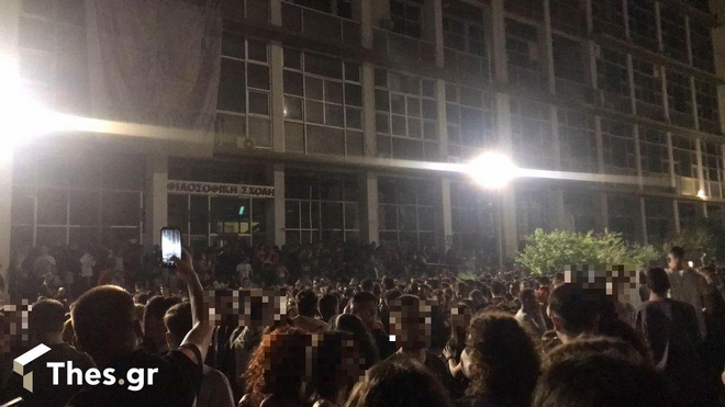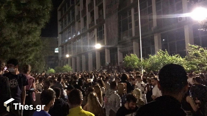 Εκατοντάδες άτομα έδωσαν το "παρών" στο κορονο- πάρτι που διοργανώθηκε για ακόμα ένα βράδυ στους χώρους του Αριστοτελείου Πανεπιστημίου.