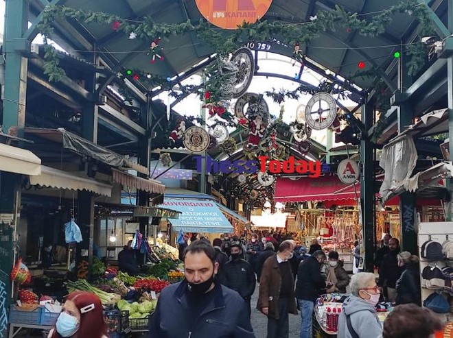 Η ιστορική αγορά της Θεσσαλονίκης έχει πλημμυρίσει από νέους και ηλικιωμένους που σπεύδουν να κάνουν τα τελευταία ψώνια για το Χριστουγεννιάτικο τραπέζι.