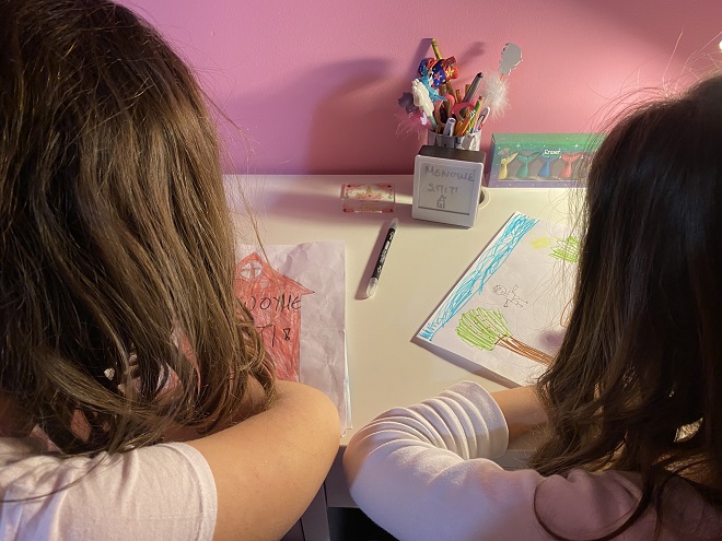 Η 11χρονη Ειρήνη και η 7χρονη αδελφή της Χαρά, από την Καλαμαριά της Θεσσαλονίκης, έπιασαν μολύβι, χαρτί και χρώματα πολλά και «κατέθεσαν» όλη τη φαντασία τους σε ένα σύντομο, εικονογραφημένο παραμύθι για τον κορονοϊό και όλη αυτή την κατάσταση που οι ίδιες, η οικογένεια, οι φίλοι τους και όλος ο πλανήτης βιώνει τον τελευταίο καιρό.
