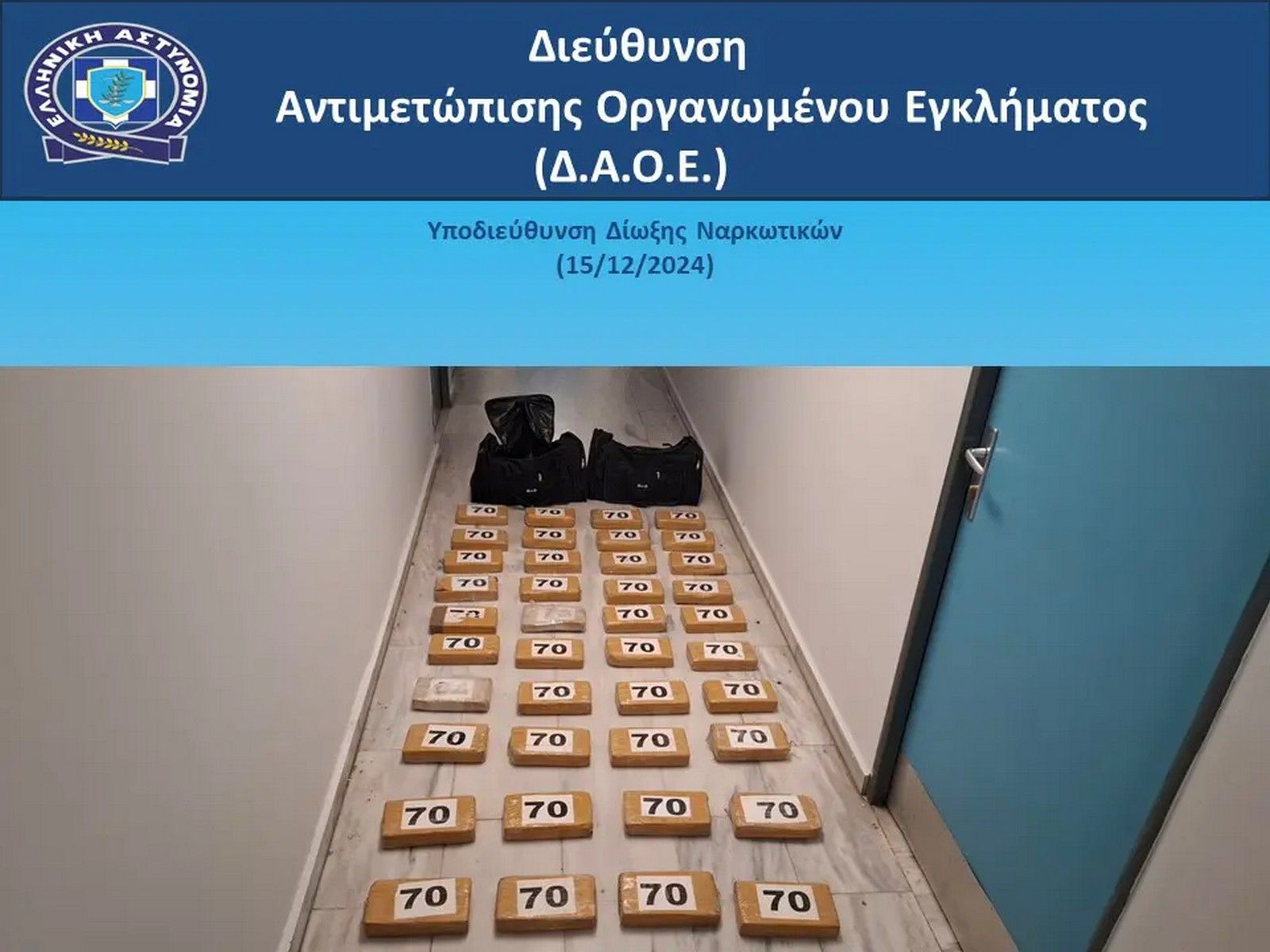 Προηγήθηκε συνεργασία με το Γραφείο D.E.A. της Πρεσβείας Η.Π.Α. Αθηνών, καθώς και του Τμήματος Δίωξης Ναρκωτικών της Υποδιεύθυνσης Αντιμετώπισης Οργανωμένου Εγκλήματος Βορείου Ελλάδος, στο πλαίσιο της οποίας καταδείχθηκε η δράση διεθνικού κυκλώματος εισαγωγής μεγάλων ποσοτήτων κοκαΐνης από το Εκουαδόρ με προορισμό χώρες της Ευρώπης, μεταξύ των οποίων και η χώρα μας.