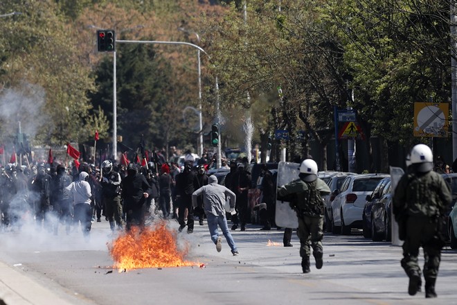 Πέτρες και μολότοφ μετά τη φοιτητική πορεία στη Θεσσαλονίκη -ΑΠΕ-ΜΠΕ