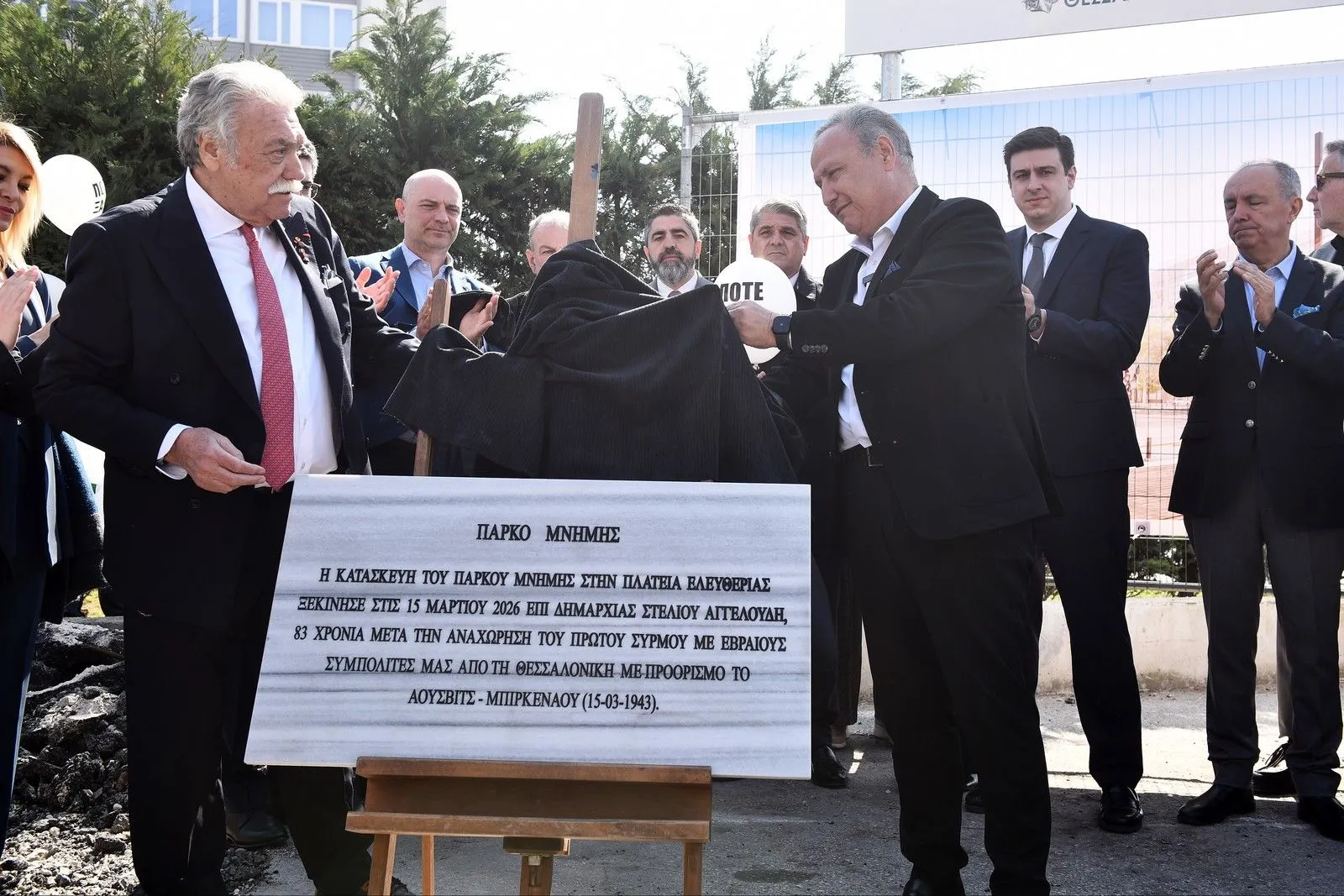 Ο δήμαρχος Θεσσαλονίκης Στέλιος Αγγελούδης αναφέρθηκε στην απώλεια που υπέστη η πόλη από την εξόντωση της εβραϊκής κοινότητας, τονίζοντας ότι «η απώλεια αυτή δεν είναι απλώς ένα σκοτεινό ιστορικό γεγονός, αλλά ένα βαθύ τραύμα στην καρδιά της Θεσσαλονίκης, γιατί η πόλη έχασε ένα κομμάτι από την ψυχή της». Ο ίδιος σημείωσε ότι η δημοτική αρχή έχει δεσμευτεί να προχωρήσει έργα που θα τιμούν τη μνήμη των θυμάτων, επισημαίνοντας πως «τα χρόνια της σιωπής και της αδιαφορίας ανήκουν στο παρελθόν» και πως η πλατεία Ελευθερίας, όπως και το Μουσείο Ολοκαυτώματος, θα αναδειχθεί «σε έναν ιστορικό τόπο που θα υπηρετεί τη μνήμη και τη διαφύλαξη της ιστορικής αλήθειας».