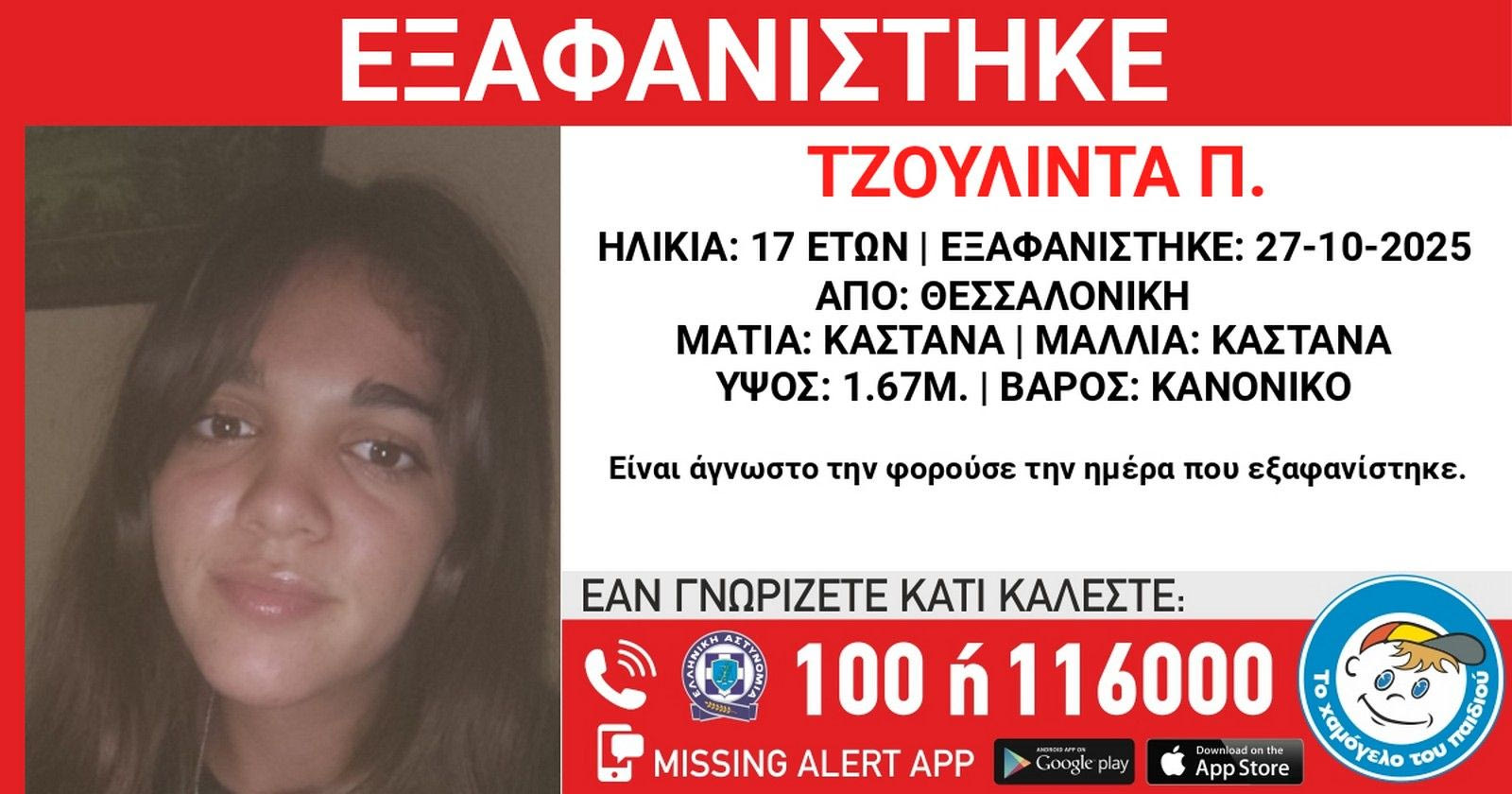 Τα ίχνη της 17χρονης Τζουλίντα Π. χάθηκαν από την περιοχή της Θεσσαλονίκης στις 27 Οκτωβρίου. Η ανακοίνωση που εξέδωσε «Το Χαμόγελο του Παιδιού».