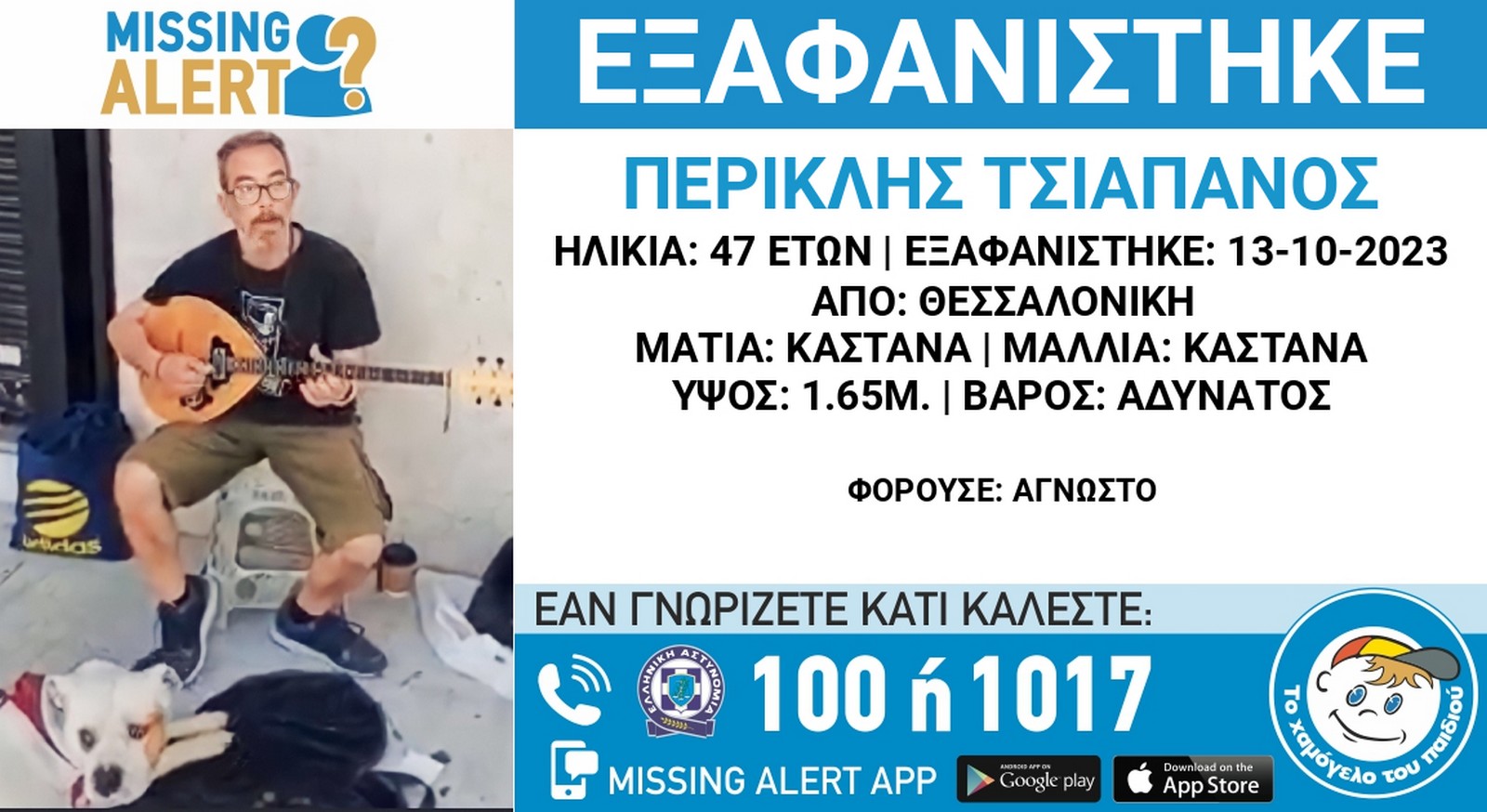 Τα ίχνη του 47χρονου χάθηκαν στις 12 Οκτωβρίου από την περιοχή Συκεών Θεσσαλονίκης. Η ανακοίνωση από το “Χαμόγελο του Παιδιού”.