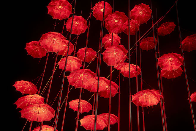 Σήμερα, Μεγάλη Παρασκευή, οι “Ομπρέλες” που αποτελούν χαρακτηριστικό σημείο αναφοράς στην πόλη, πρόκειται να φωτιστούν με πένθιμο μωβ χρώμα.