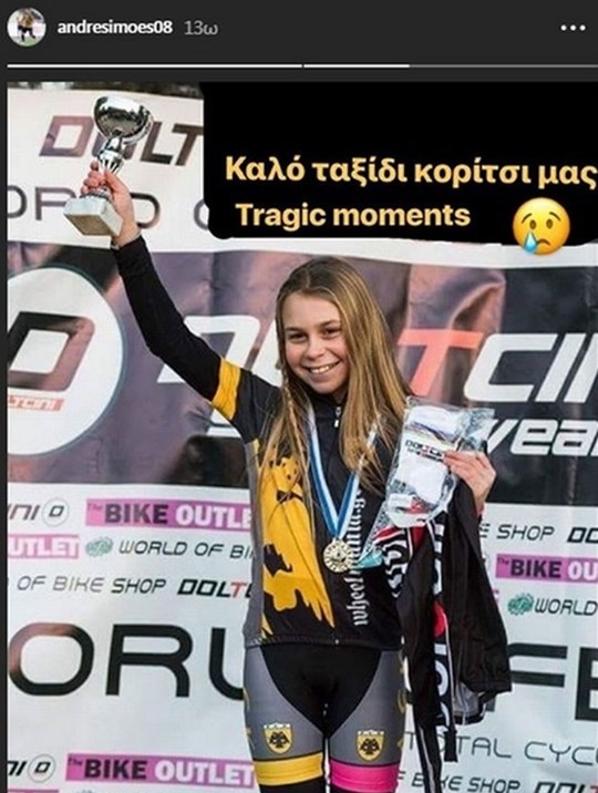 Η Εβίτα ήταν πέρυσι στην Ακαδημία της ΑΕΚ στην ποδηλασία και είχε πάρει μεταγραφή στον Κρόνο Νίκαιας, ενώ είχε κερδίσει χρυσά μετάλλια. Αθλητικοί σύλλογοι και οι φίλοι της την αποχαιρετούν σήμερα με αναρτήσεις τους στα κοινωνικά μέσα δικτύωσης. Αξίζει να σημειωθεί πως ο πατέρας της ήταν και εκείνος παλαιότερα αθλητής ποδηλασίας στην ΑΕΚ ενώ και ο 11χρονος Ανδρέας ήθελε να ακολουθήσει την οικογενειακή παράδοση.