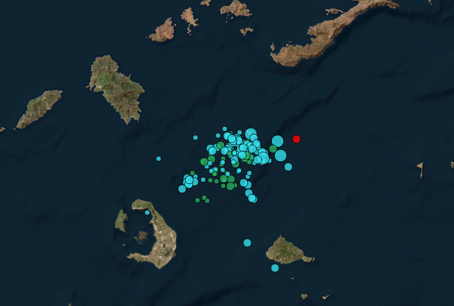 - Το τελευταίο 24ωρο καταγράφεται στην περιοχή της Ανύδρου, μεταξύ Θήρας και Αμοργού, αυξημένη σεισμική ακολουθία με μέγιστο μέγεθος το 4.3. Αυτή η σεισμική δραστηριότητα δεν σχετίζεται με ηφαιστειακή δραστηριότητα, καθώς οφείλεται σε υποθαλάσσια ρήγματα με διεύθυνση ΒΑ-ΝΔ.