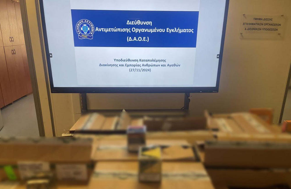 Από τις έρευνες που πραγματοποιήθηκαν συνολικά βρέθηκαν και κατασχέθηκαν 769,9 γραμμ. κάνναβης, δενδρύλλιο κάνναβης, 18 φαρμακευτικά δισκία, 10.890 πακέτα καπνικών προϊόντων (κλοπιμαία αξίας 500.000 ευρώ), 2 σπαθιά, 4 μαχαίρια, 4 φυσίγγια, 3 πιστόλια, αεροβόλο, 5 ασύρματοι, 23 σκληροί δίσκοι, 2 φωσφορούχα γιλέκα, 311 απομιμητικά προϊόντα, 465 ευρώ και 2 ζυγαριές ακριβείας.